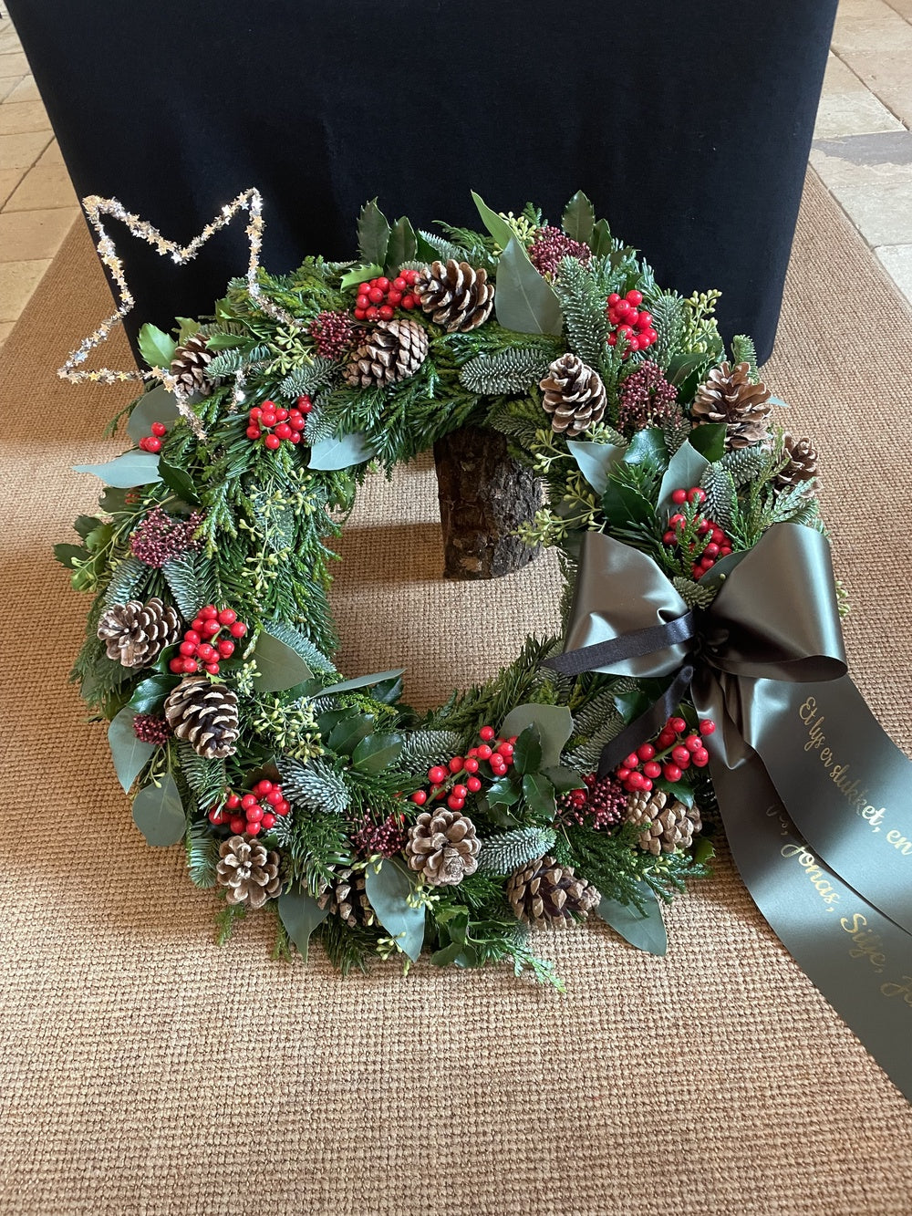 Super hjælp og hurtig levering af satinbånd til krans til bisættelse.