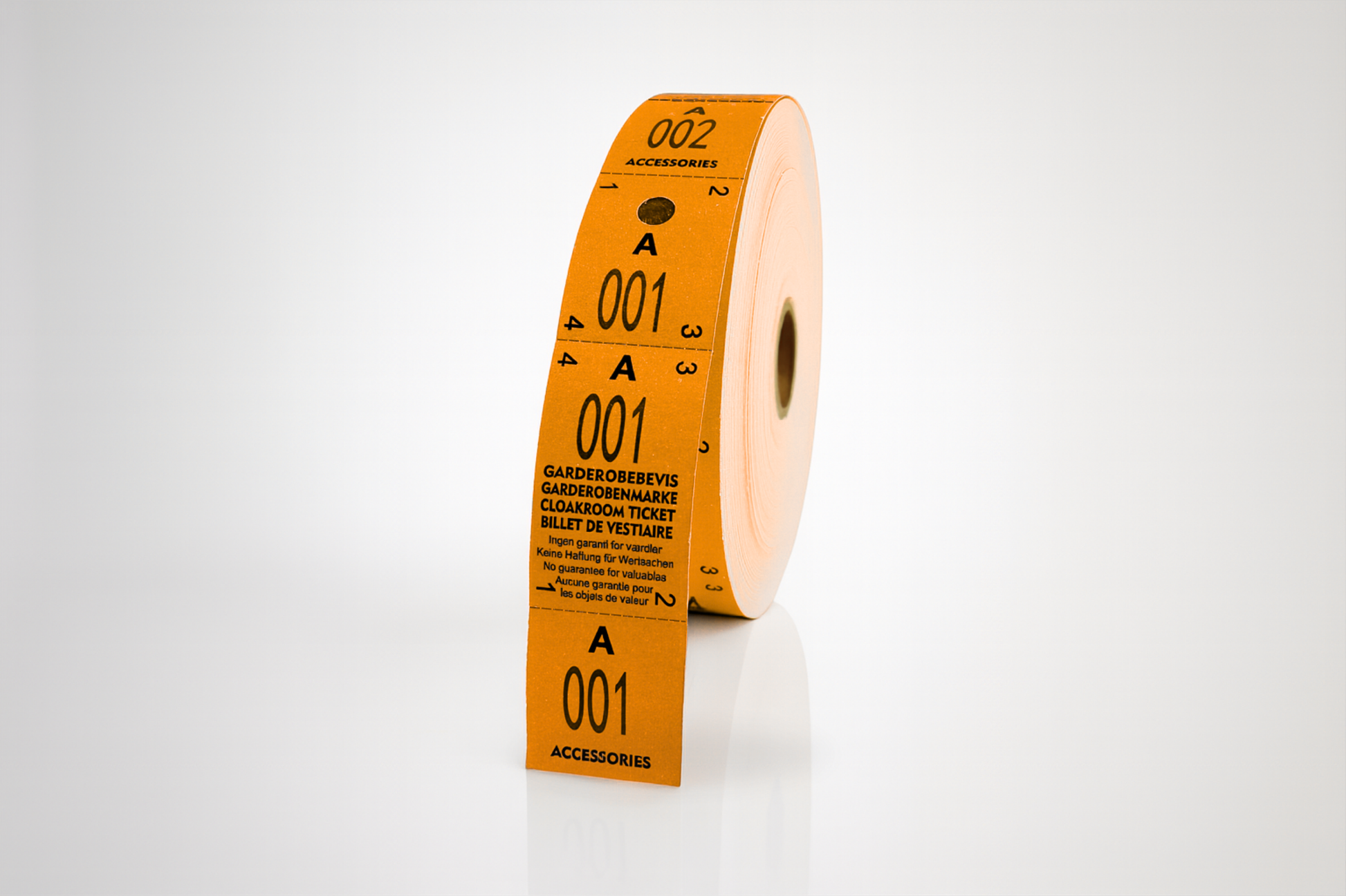 Organisér og sikr dine gæsters ejendele med vores tre-delte, sekventielt nummererede billetter.